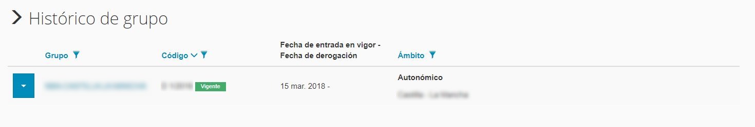 Cuando se accede al histórico aparecerá un listado con todas las modificaciones que ha sufrido el grupo de normativa en cuestión.