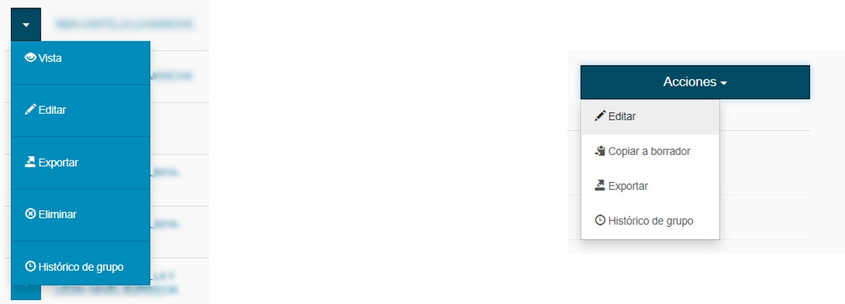 • Desde el listado de normativas, desplegando el botón