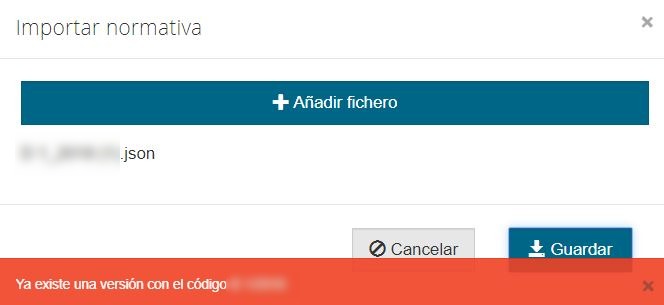 Si se intenta importar el mismo archivo el sistema devolverá un aviso de que esa normativa ya existe.