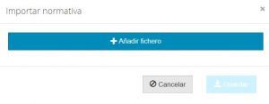 En la ventana emergente utilizar el botón ‘+ Añadir fichero’ para buscar en el explorador el archivo a importar y guardar.