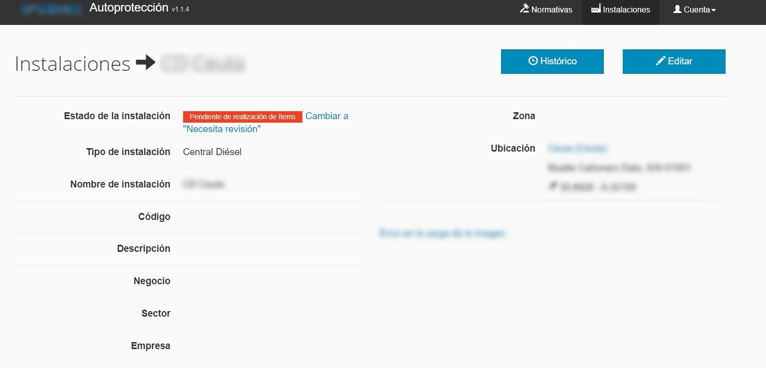 • Pendiente de evaluar normativa (naranja): instalaciones nuevas que todavía no se les ha asignado ninguna normativa. Para cambiar de este estado consultar el apartado 3.7 del manual