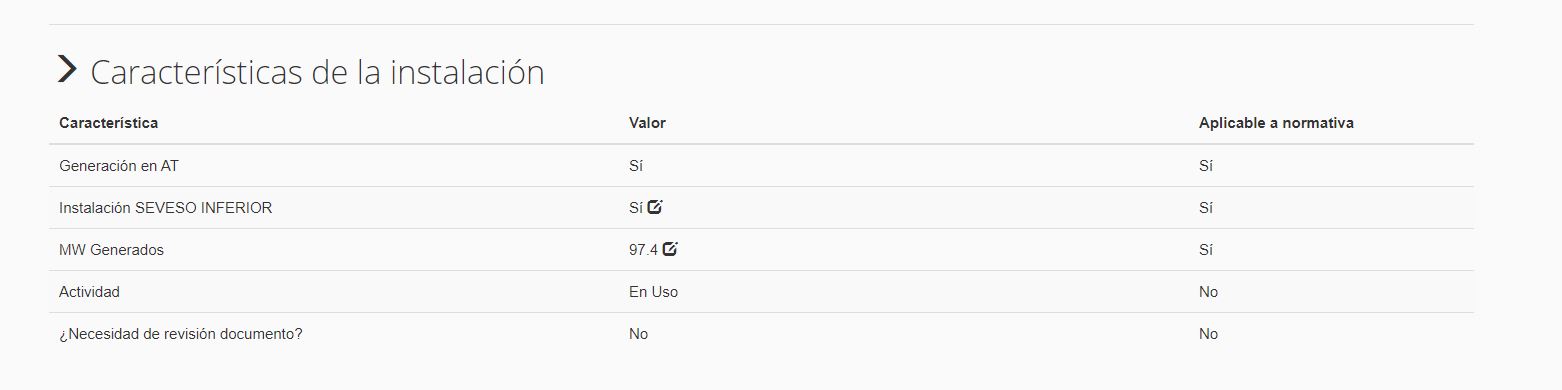 Por último, se muestran en un listado los ítems marcados por las normativas que debe cumplir la instalación.