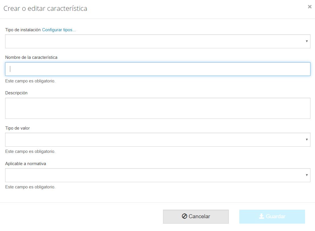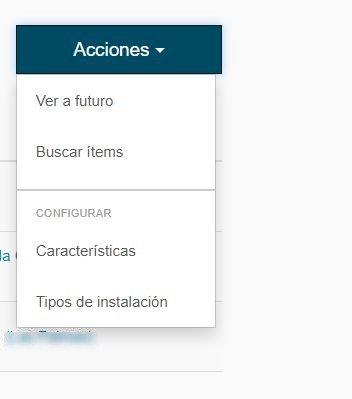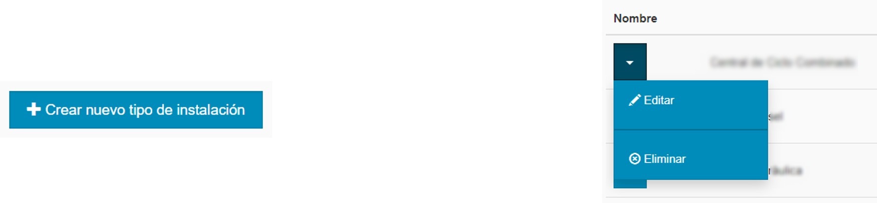 Cuando se define una instalación, una de las propiedades que se utiliza es el tipo de instalación y sus características. Para configurarlas, es decir, crear una nueva o editar las existentes, se accede a través del desplegable que se abre pulsando el botón de ‘Acciones’ en el resumen de instalaciones.