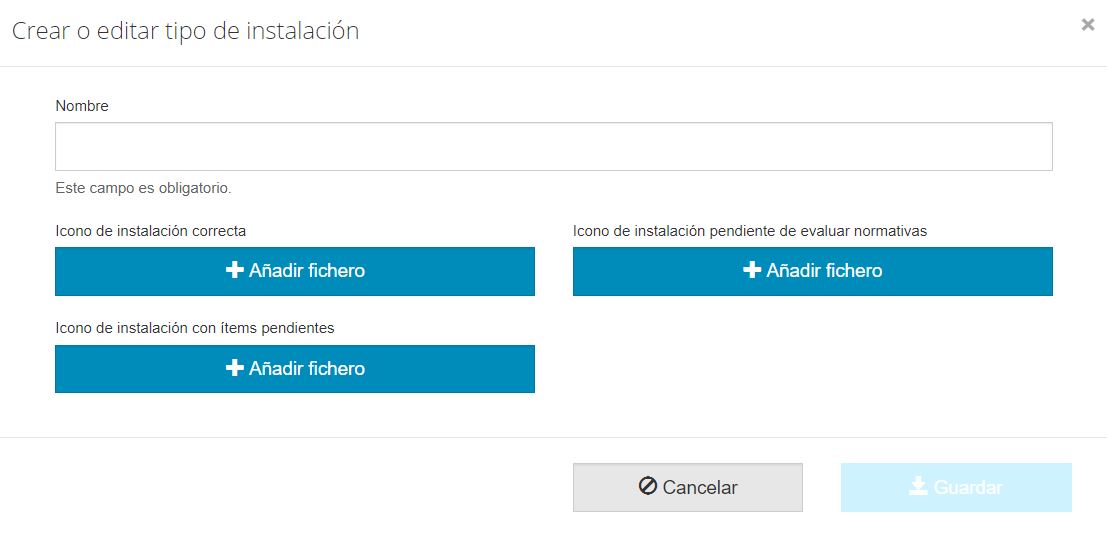 - Iconos de la instalación que se utilizarán para visualizarlas en el mapa inicial y se subirán como un archivo de imagen: